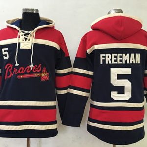 Authentic MLB Braves #5 Freddie Freeman Navy Blue Sawyer Hooded Sweatshirt MLB Hoodie