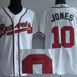 Authentic MLB Braves #10 Chipper Jones White Cool Base Autographed Stitched MLB Jersey
