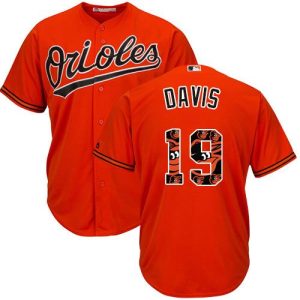 Authentic MLB Orioles #19 Chris Davis Orange Team Logo Fashion Stitched MLB Jersey