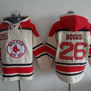 Authentic MLB Red Sox #26 Wade Boggs Cream Sawyer Hooded Sweatshirt MLB Hoodie