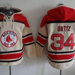 Authentic MLB Red Sox #34 David Ortiz Cream Sawyer Hooded Sweatshirt MLB Hoodie