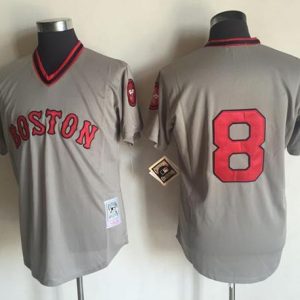 Authentic MLB Mitchell and Ness 1975 Red Sox #8 Carl Yastrzemski Grey Stitched Throwback MLB Jersey