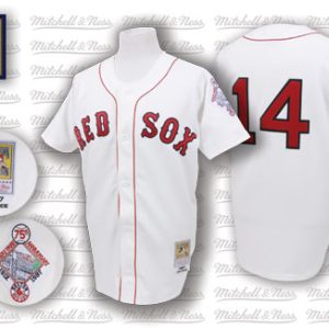 Authentic MLB Mitchell and Ness Red Sox #14 Jim Rice Stitched White Throwback MLB Jersey