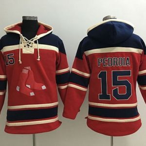 Authentic MLB Red Sox #15 Dustin Pedroia Red Sawyer Hooded Sweatshirt MLB Hoodie