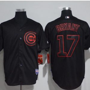 Authentic MLB Cubs #17 Kris Bryant Black Strip Stitched MLB Jersey