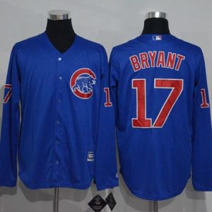 Authentic MLB Cubs #17 Kris Bryant Blue Long Sleeve Stitched MLB Jersey