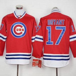 Authentic MLB Cubs #17 Kris Bryant Red Long Sleeve Stitched MLB Jersey