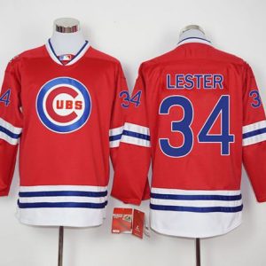 Authentic MLB Cubs #34 Jon Lester Red Long Sleeve Stitched MLB Jersey