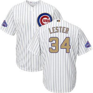 Authentic MLB Cubs #34 Jon Lester White(Blue Strip) Gold Program Cool Base Stitched MLB Jersey