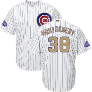 Authentic MLB Cubs #38 Mike Montgomery White(Blue Strip) Gold Program Cool Base Stitched MLB Jersey