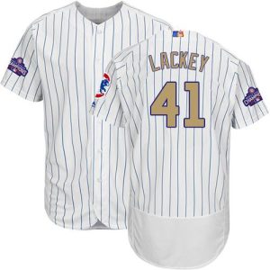 Authentic MLB Cubs #41 John Lackey White(Blue Strip) Gold Program Cool Base Stitched MLB Jersey