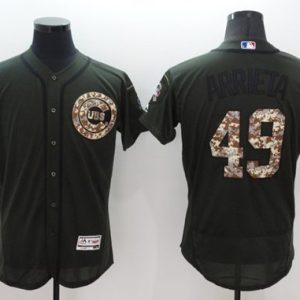Authentic MLB Cubs #49 Jake Arrieta Green Flexbase Authentic Collection Salute to Service Stitched MLB Jersey