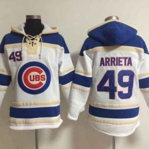 Authentic MLB Cubs #49 Jake Arrieta White Sawyer Hooded Sweatshirt MLB Hoodie