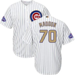 Authentic MLB Cubs #70 Joe Maddon White(Blue Strip) Gold Program Cool Base Stitched MLB Jersey