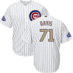 Authentic MLB Cubs #71 Wade Davis White(Blue Strip) Gold Program Cool Base Stitched MLB Jersey