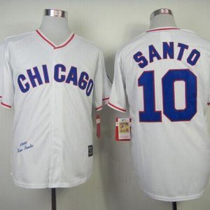 Authentic MLB Mitchell and Ness 1969 Cubs #10 Ron Santo White Throwback Stitched MLB Jersey