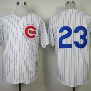 Authentic MLB Mitchell And Ness 1987 Cubs #23 Ryne Sandberg White(Blue Strip) Throwback Stitched MLB Jersey