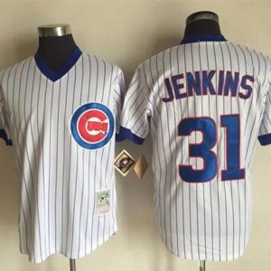 Authentic MLB Mitchell And Ness Cubs #31 Fergie Jenkins White Strip Throwback Stitched MLB Jersey