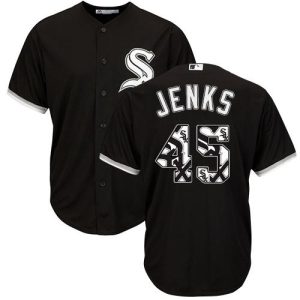 Authentic MLB White Sox #45 Bobby Jenks Black Team Logo Fashion Stitched MLB Jersey