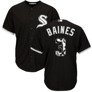 Authentic MLB White Sox #3 Harold Baines Black Team Logo Fashion Stitched MLB Jersey