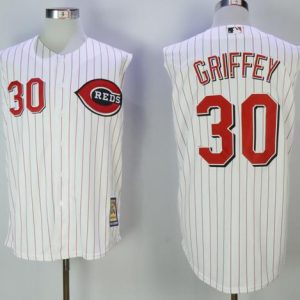 Authentic MLB Mitchell And Ness 2000 Reds #30 Ken Griffey White Strip Throwback Stitched MLB Jersey