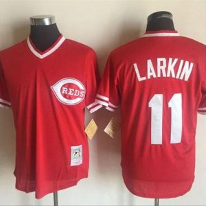 Authentic MLB Mitchell And Ness Reds #11 Barry Larkin Red Throwback Stitched MLB Jersey