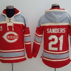 Authentic MLB Reds #21 Reggie Sanders Red Sawyer Hooded Sweatshirt MLB Hoodie