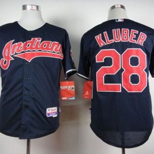 Authentic MLB Indians #28 Corey Kluber Navy Blue Team Logo Fashion Stitched MLB Jersey
