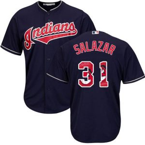 Authentic MLB Indians #31 Danny Salazar Navy Blue Team Logo Fashion Stitched MLB Jersey