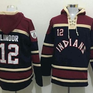 Authentic MLB Indians #12 Francisco Lindor Black Sawyer Hooded Sweatshirt MLB Hoodie