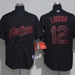 Authentic MLB Indians #12 Francisco Lindor Black Strip Stitched MLB Jersey