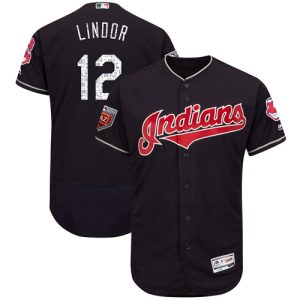 Authentic MLB Indians #12 Francisco Lindor Navy Blue 2018 Spring Training Authentic Flex Base Stitched MLB Jersey