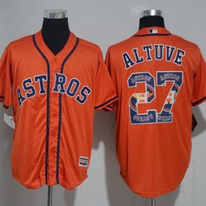 Authentic MLB Astros #27 Jose Altuve Orange USA Flag Fashion Stitched MLB Jersey