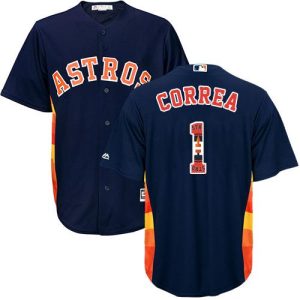 Authentic MLB Astros #1 Carlos Correa Navy Blue Team Logo Fashion Stitched MLB Jersey