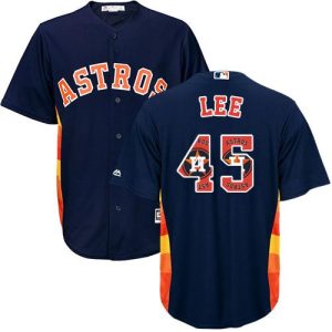 Authentic MLB Astros #45 Carlos Lee Navy Blue Team Logo Fashion Stitched MLB Jersey
