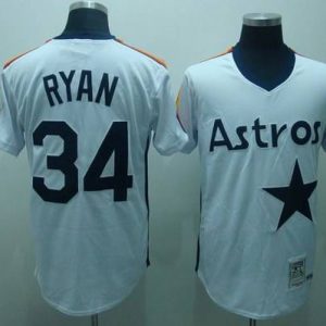 Authentic MLB Mitchell and Ness Astros #34 Nolan Ryan Stitched White Throwback MLB Jersey