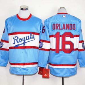Authentic MLB Royals #16 Paulo Orlando Light Blue Long Sleeve Stitched MLB Jersey
