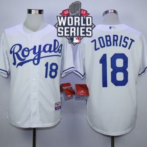 Authentic MLB Royals #18 Ben Zobrist White Cool Base W/2015 World Series Patch Stitched MLB Jersey