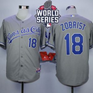 Authentic MLB Royals #18 Ben Zobrist Grey Cool Base W/2015 World Series Patch Stitched MLB Jersey
