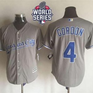 Authentic MLB Royals #4 Alex Gordon New Grey Cool Base W/2015 World Series Patch Stitched MLB Jersey