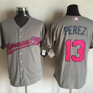Authentic MLB Royals #13 Salvador Perez Grey New Cool Base Mother’s Day Stitched MLB Jersey