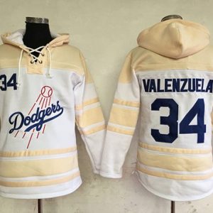 Authentic MLB Dodgers #34 Fernando Valenzuela White Sawyer Hooded Sweatshirt MLB Hoodie