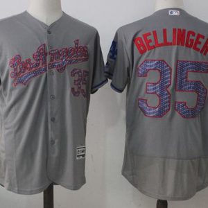 Authentic MLB Dodgers #35 Cody Bellinger Grey Fashion Stars & Stripes Flexbase Authentic Stitched MLB Jersey