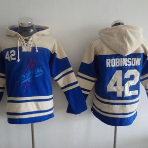 Authentic MLB Dodgers #42 Jackie Robinson Blue Sawyer Hooded Sweatshirt MLB Hoodie