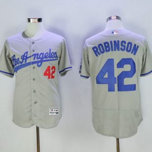 Authentic MLB Dodgers #42 Jackie Robinson Grey Flexbase Authentic Collection Road Stitched MLB Jersey