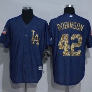 Authentic MLB Dodgers #42 Jackie Robinson Blue USA Flag Fashion Stitched MLB Jersey
