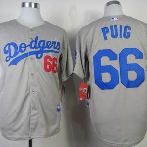 Authentic MLB Dodgers #66 Yasiel Puig Grey Cool Base Stitched MLB Jersey