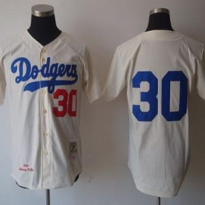 Authentic MLB Mitchell And Ness 1962 Dodgers #30 Maury Wills Cream Stitched Throwback MLB Jersey