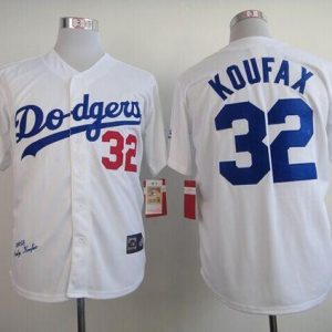Authentic MLB Mitchell and Ness 1958 Dodgers #32 Sandy Koufax White w/1955 World Patch Majestic Stitched MLB Jersey
