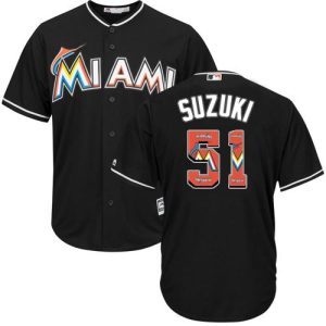 Authentic MLB marlins #51 Ichiro Suzuki Black Team Logo Fashion Stitched MLB Jersey